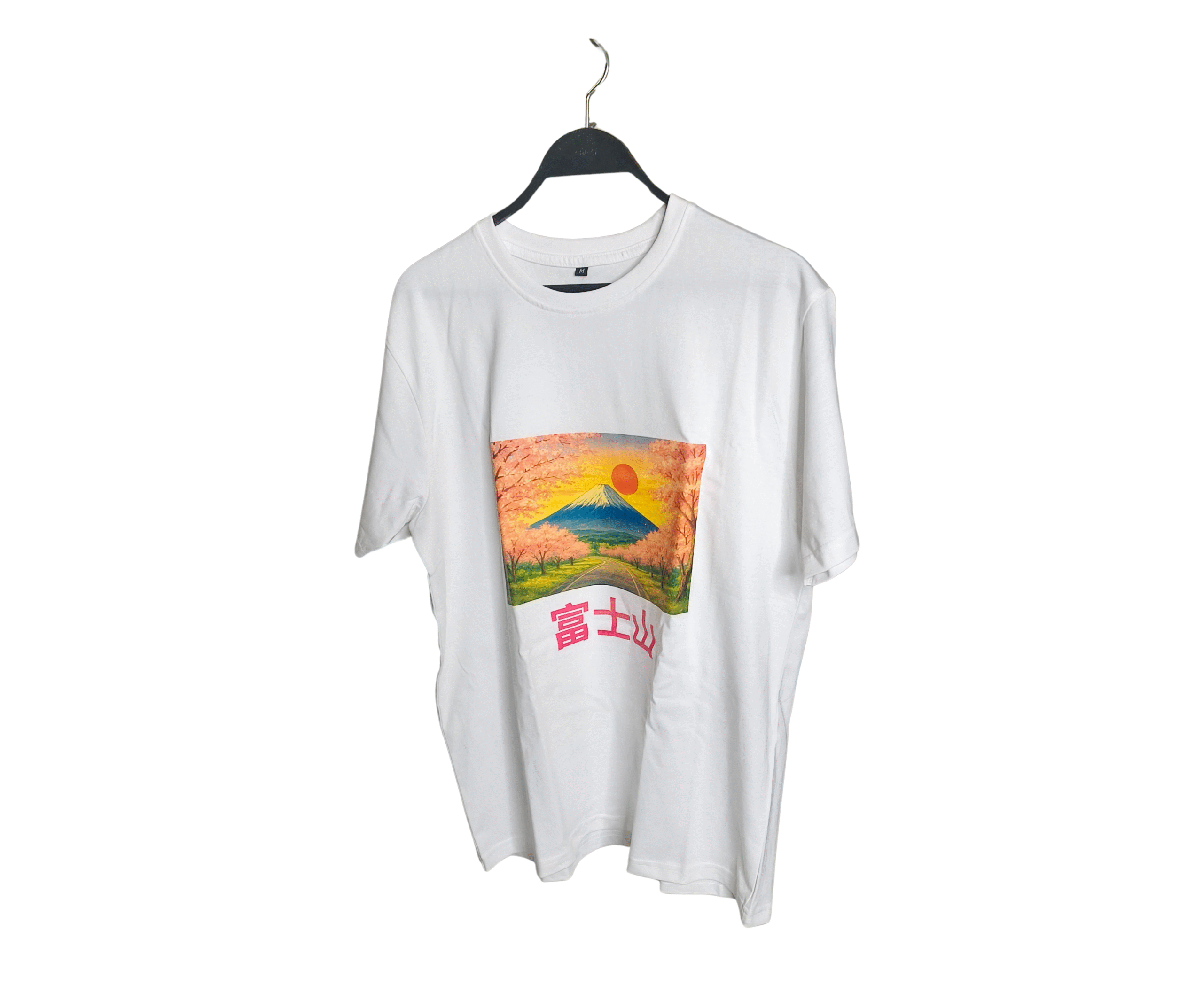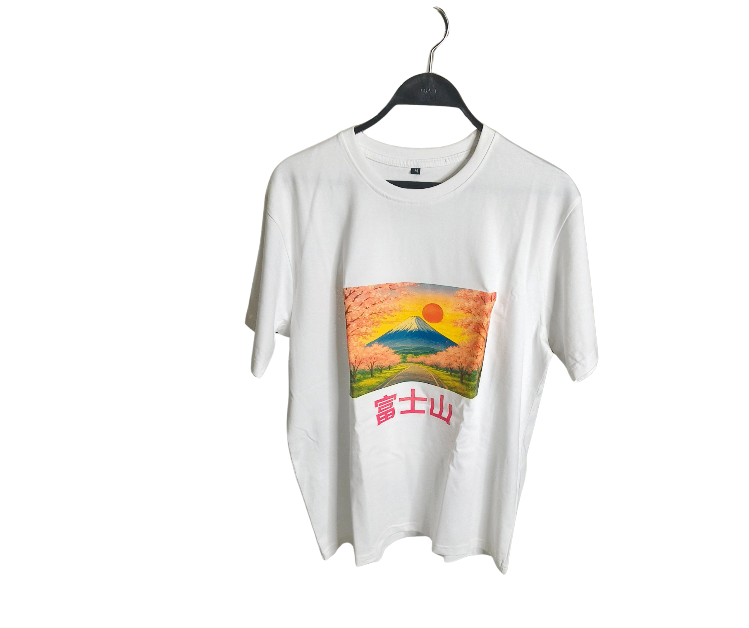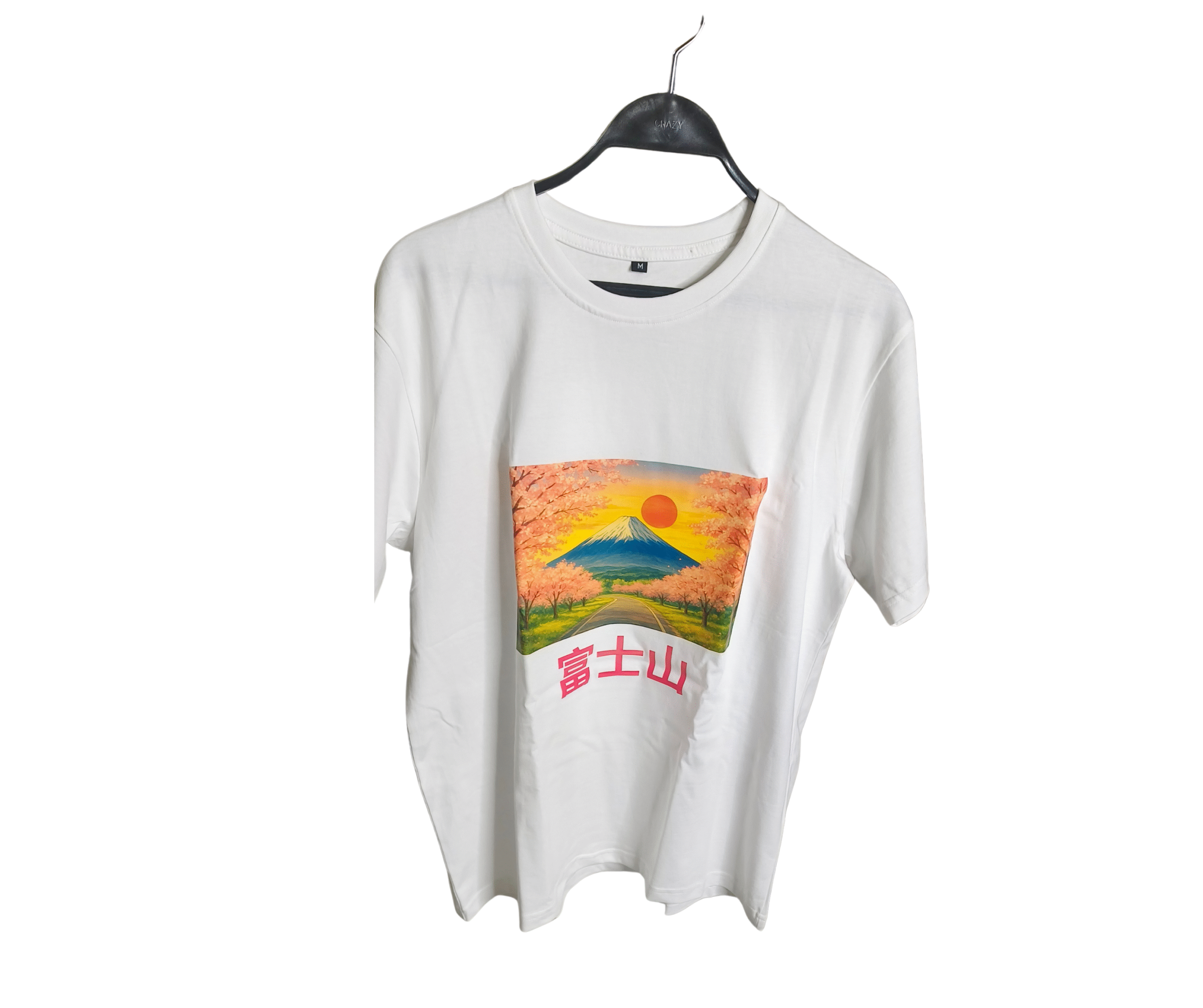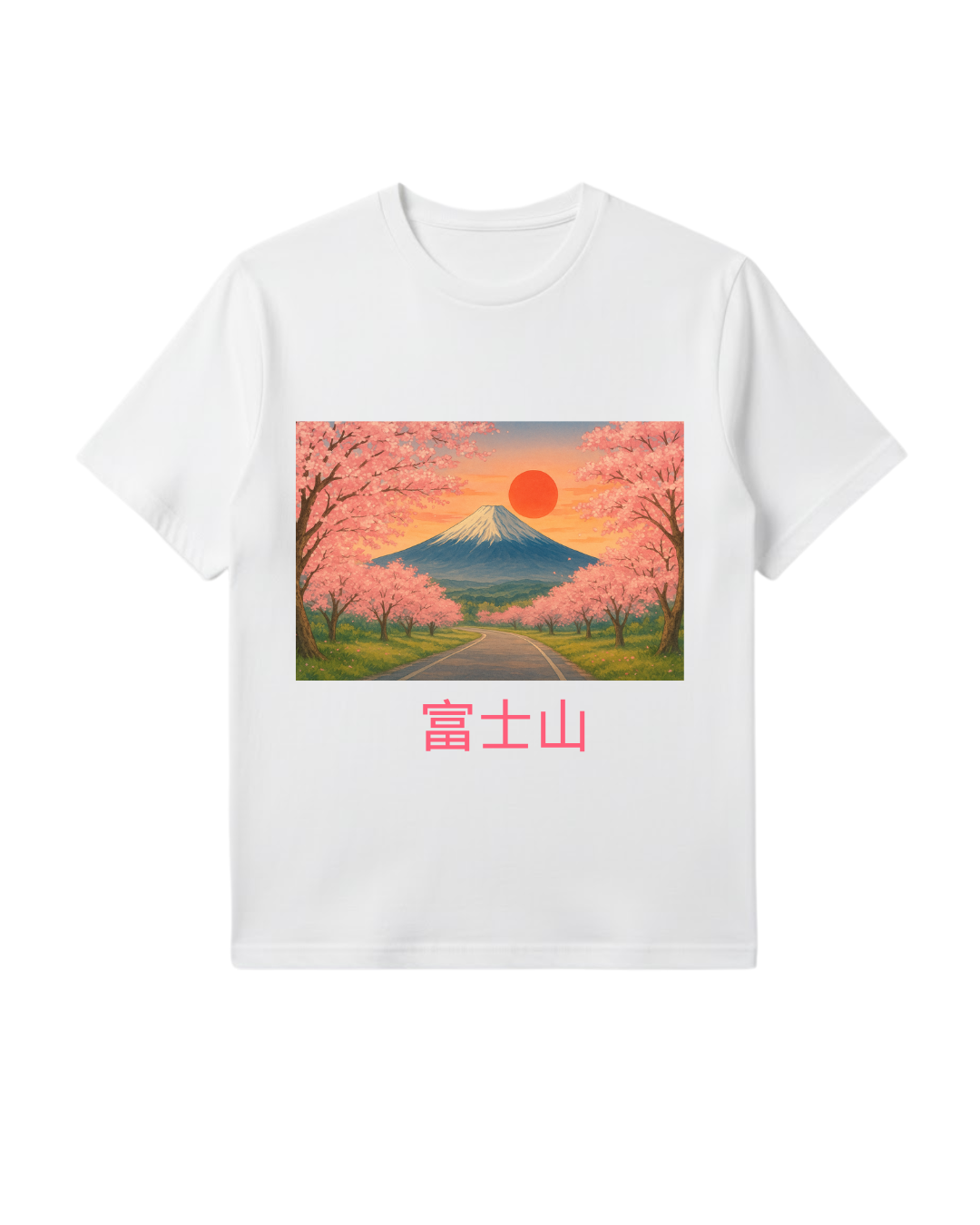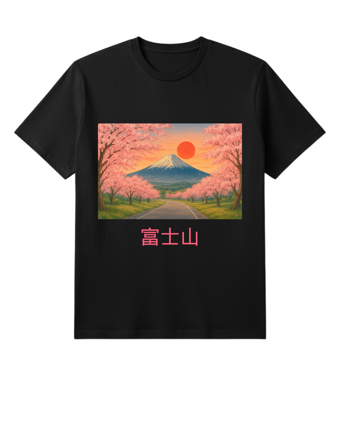 This tee features a breathtaking artwork of Mount Fuji framed by cherry blossoms and a rising sun—capturing the true spirit of Nihon (Japan).